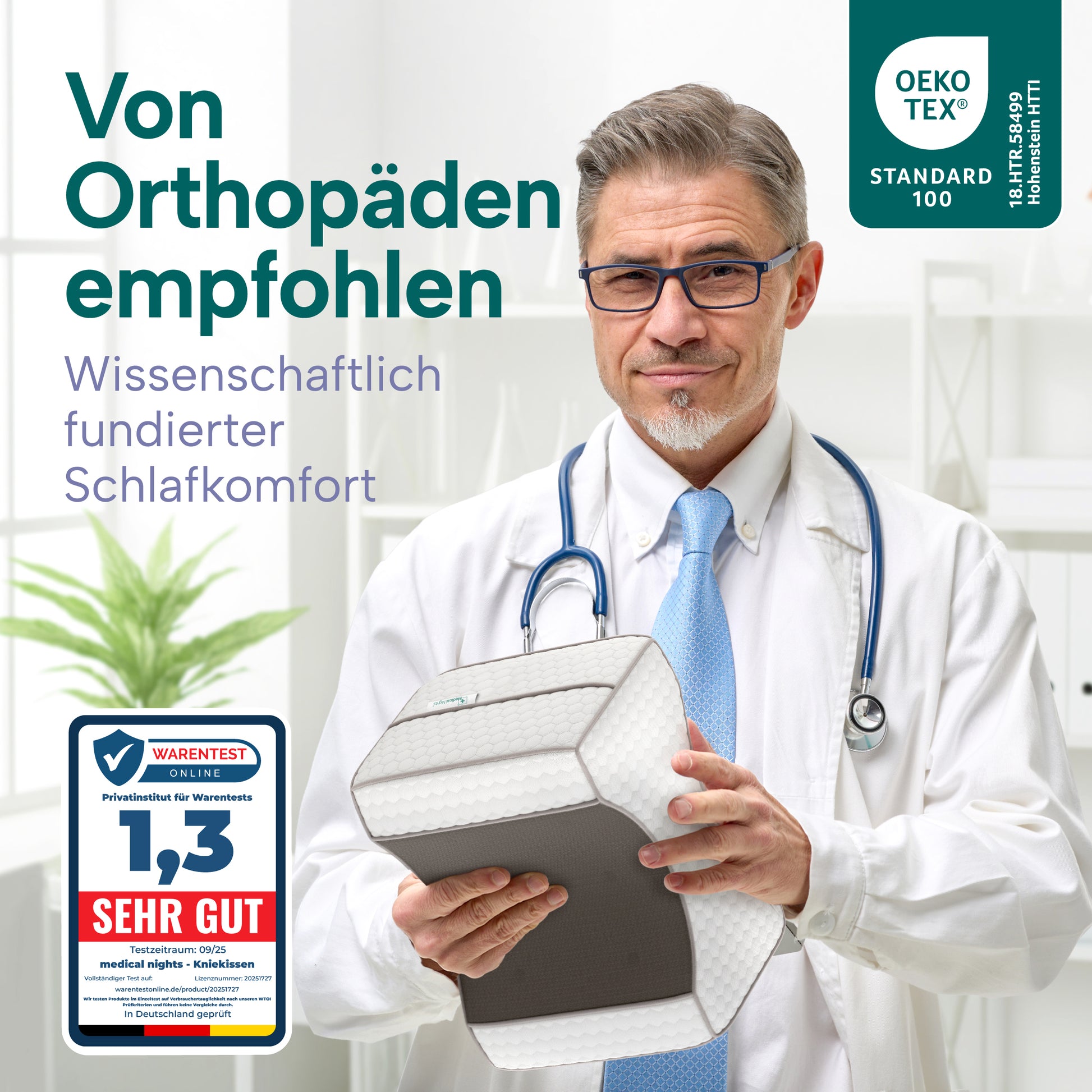 Schlaf endlich wieder durch – mit unserem orthopädischen Kniekissen speziell für Seitenschläfer.