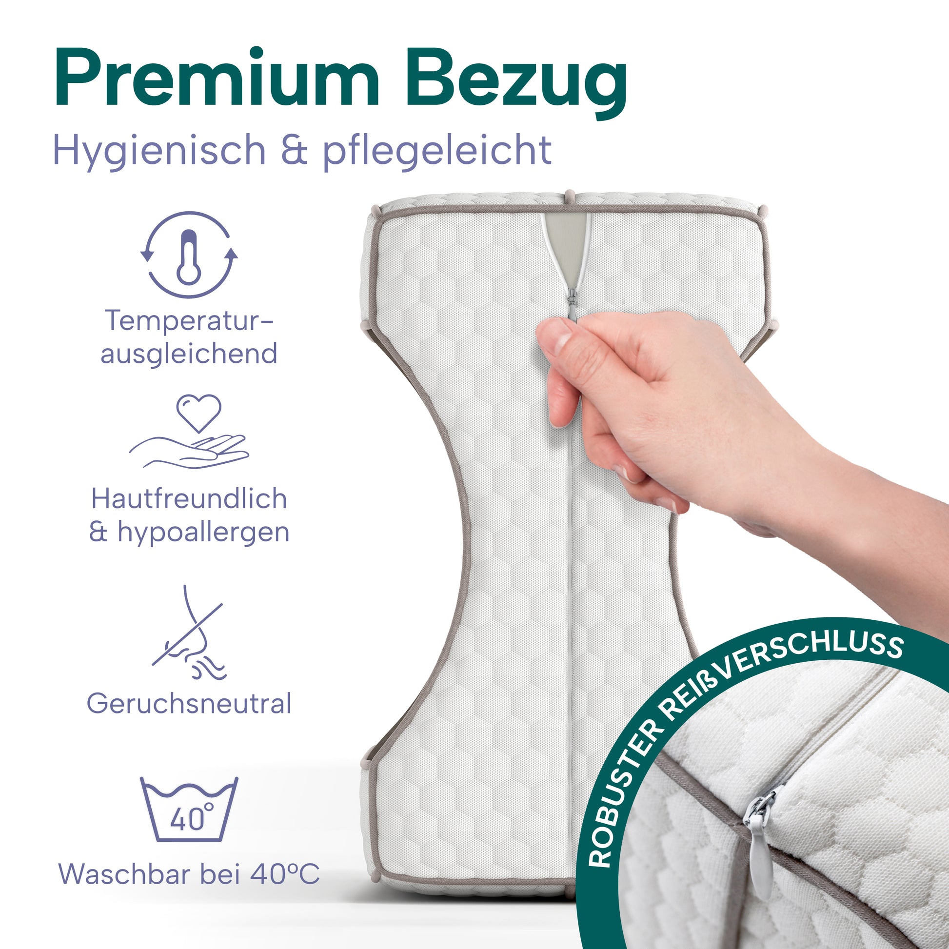 ✅ Atmungsaktiver Bezug – waschbar & angenehm auf der Haut